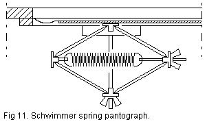 A difficulty with concussion bellows is that you have to match the spring force quite precisely to the actual pressure. It is a passive device that adapts to the pressure, whatever this happens to be, it does not regulate it. If the spring force is too high or too low, then the bellows will stay in one of its end positions and will not be able to supply any volume displacements. With a schwimmer adjustable pantograph like in fig.11 you can adjust both the spring constant and the spring force operating on the plate. You can then come very close to infinite capacitance, i.e. constant pressure independent of plate position, but for this to be practical pressure must be closely regulated.