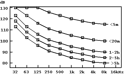More recent investigations on symphony orchestra musicians have shown that they generally receive less hearing damage than predicted from the sound levels they are exposed to.  The reason is believed to be psychological.  Pop musicians using amplification, and their audience, are usually way up in the dangerous area and protectors are strongly recommended.  Also, tinnitus cases among these people are much more frequent than you would like to know.