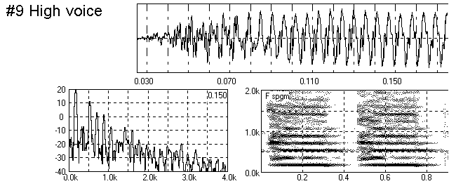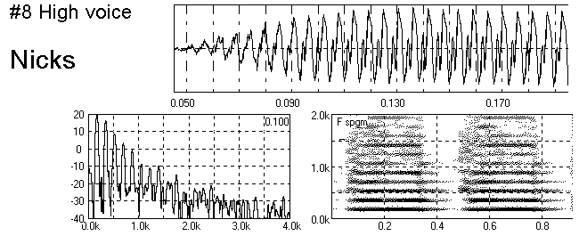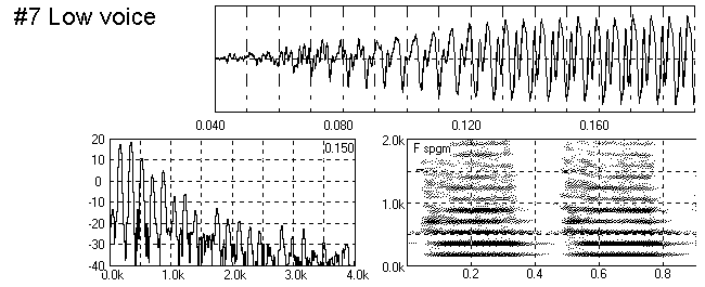 This #7 can be regarded as a 'normal' voicing of the pipe. An edgetone 'chiff' near the fourth harmonic at 700 Hz is clearly visible from 0.05 to 0.09 s in the time wave and the spectrogram.