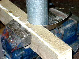 diameter iron tube and a wood block hollowed out to match its surface